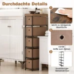 Komoda 40x19x100cm rudos ir juodos spalvos yra praktiškas sprendimas daiktų laikymui mažose erdvėse. Su siauru profiliu ir tvirta metaline konstrukcija, šis baldas užtikrina stabilumą bei funkcionalumą įvairiose patalpose.