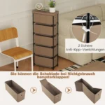 - Komoda turi 5 sulankstomus medžiaginius stalčius su metalinėmis rankenomis lengvam atidarymui.