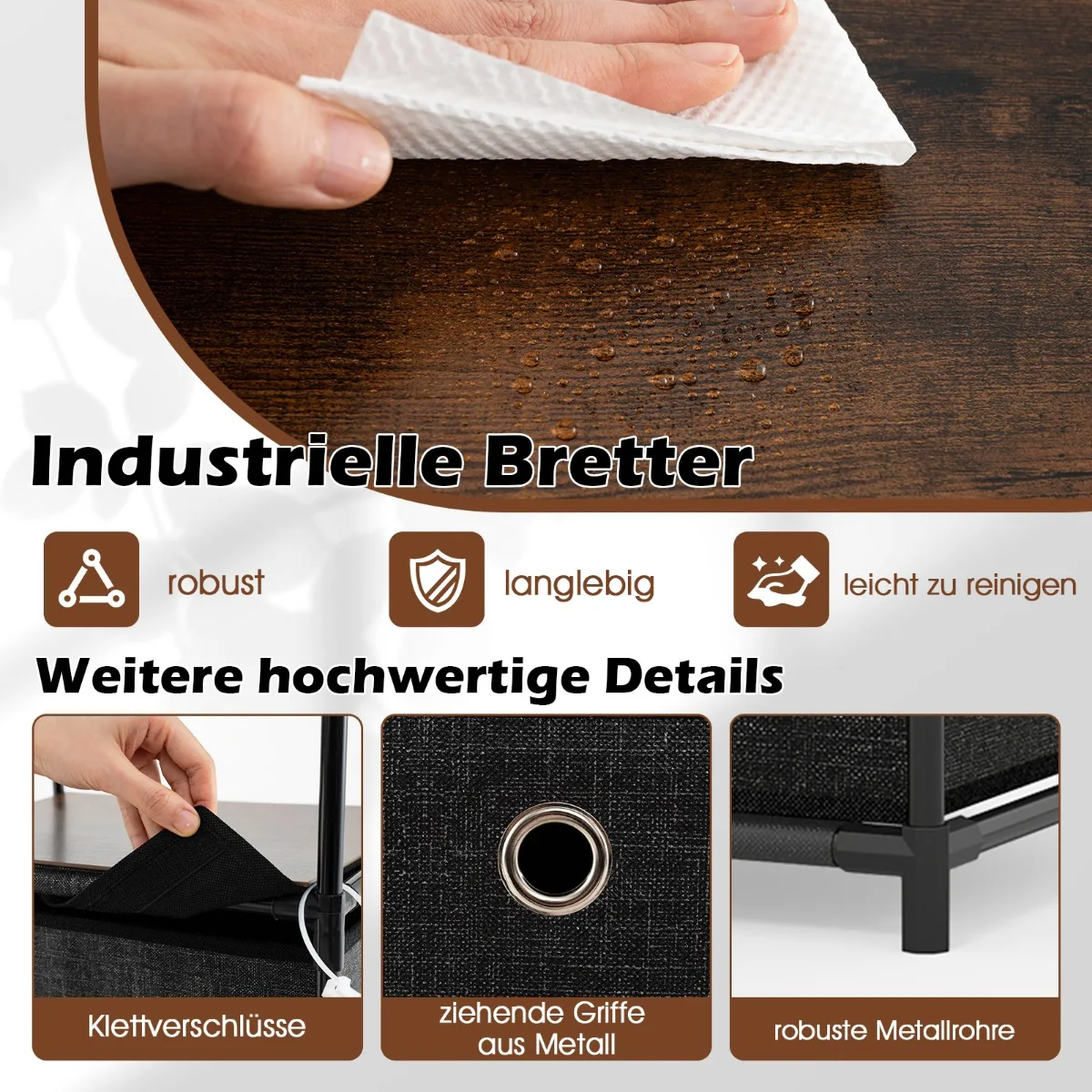 - Komodoje yra keturi sulankstomi ir išimami medžiaginiai stalčiai, kurie palengvina daiktų tvarkymą.