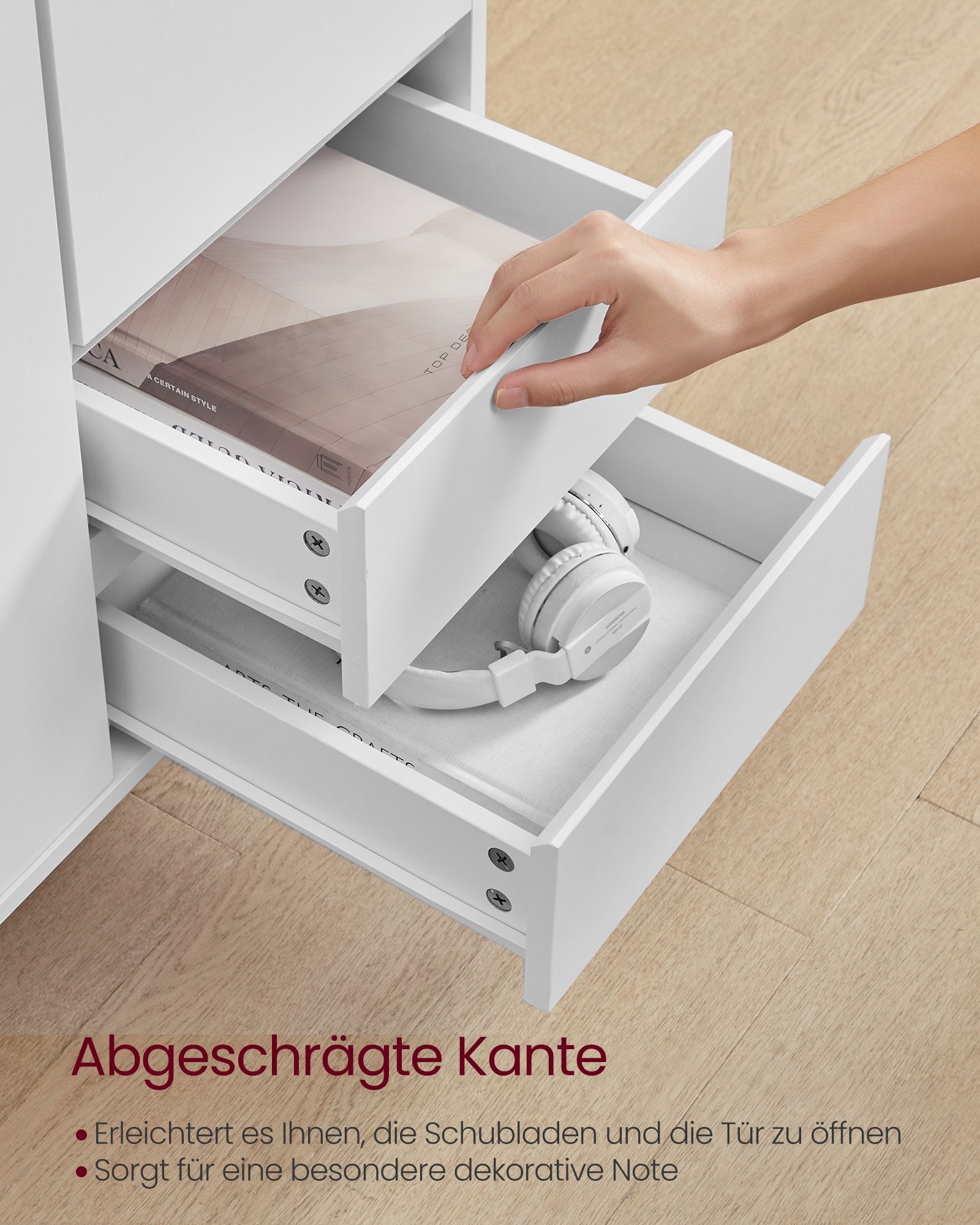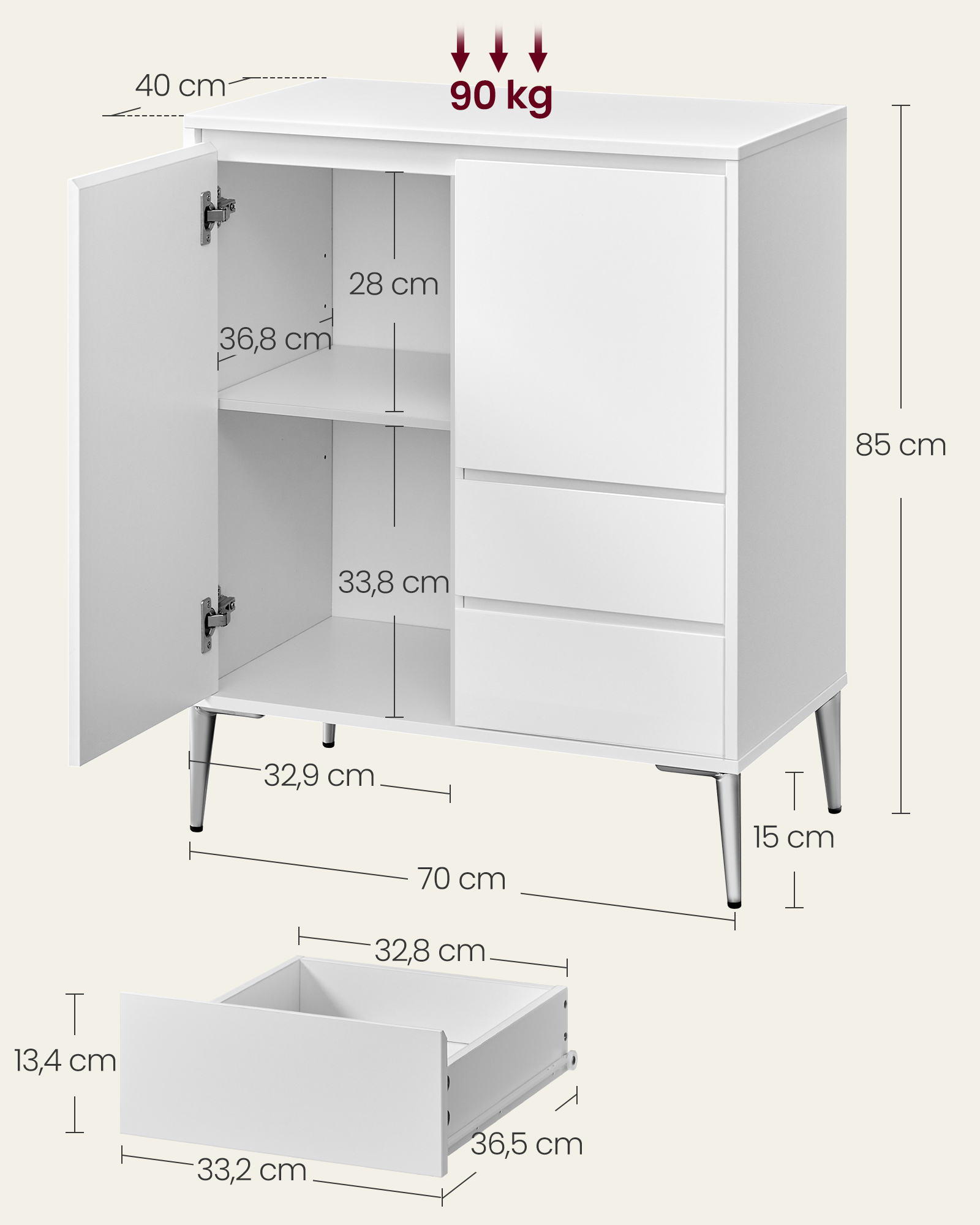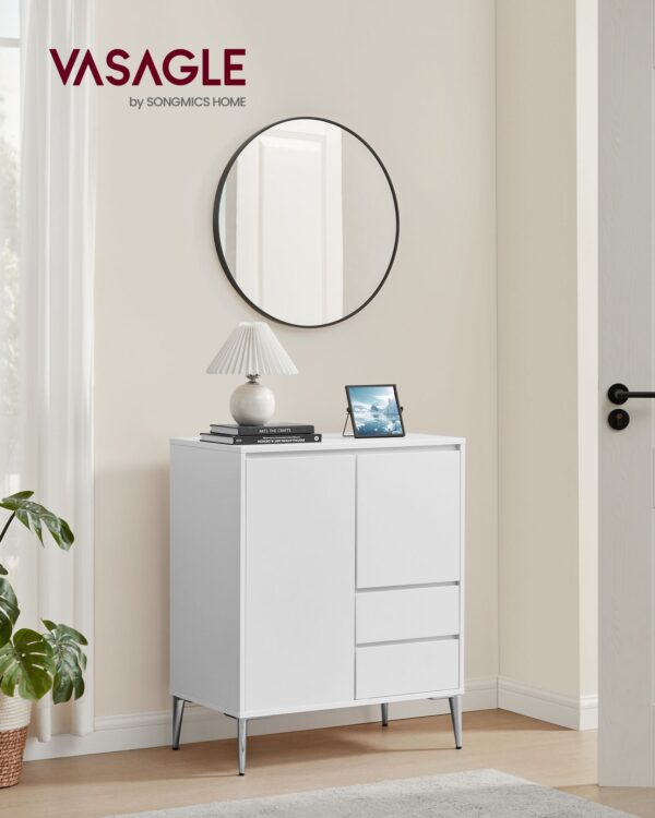 Įneškite elegancijos ir funkcionalumo į savo namus su šia stilinga komoda. Jos minimalistinis dizainas ir subtili debesų balta spalva puikiai derės prie bet kokio interjero, suteikdama erdvei šviesos ir švaros pojūtį.