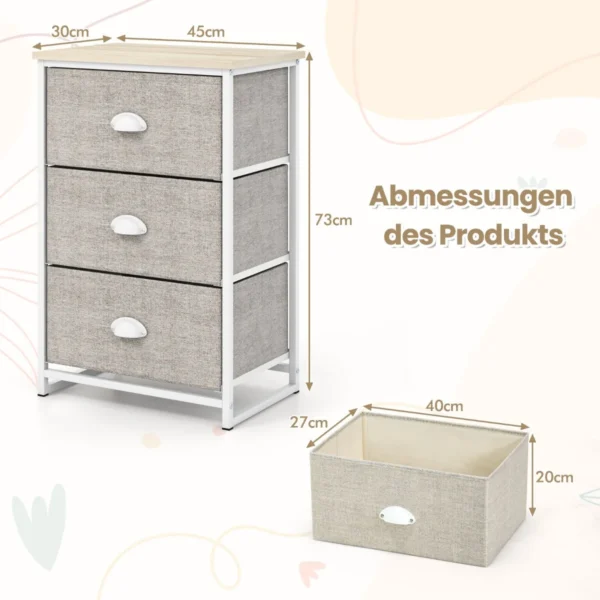 Komoda 45x30x73 cm, pilkos ir baltos spalvos, puikiai tinka įvairioms patalpoms kaip miegamasis, svetainė ar prieškambaris. Šis baldas su 3 stalčiais leidžia efektyviai organizuoti ir laikyti įvairius daiktus, derindamas patvarumą su funkcionalumu.