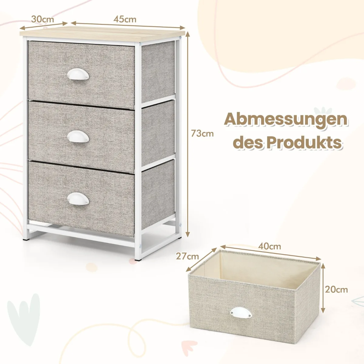 - Bendri matmenys: 45 x 30 x 73 cm (plotis x gylis x aukštis)