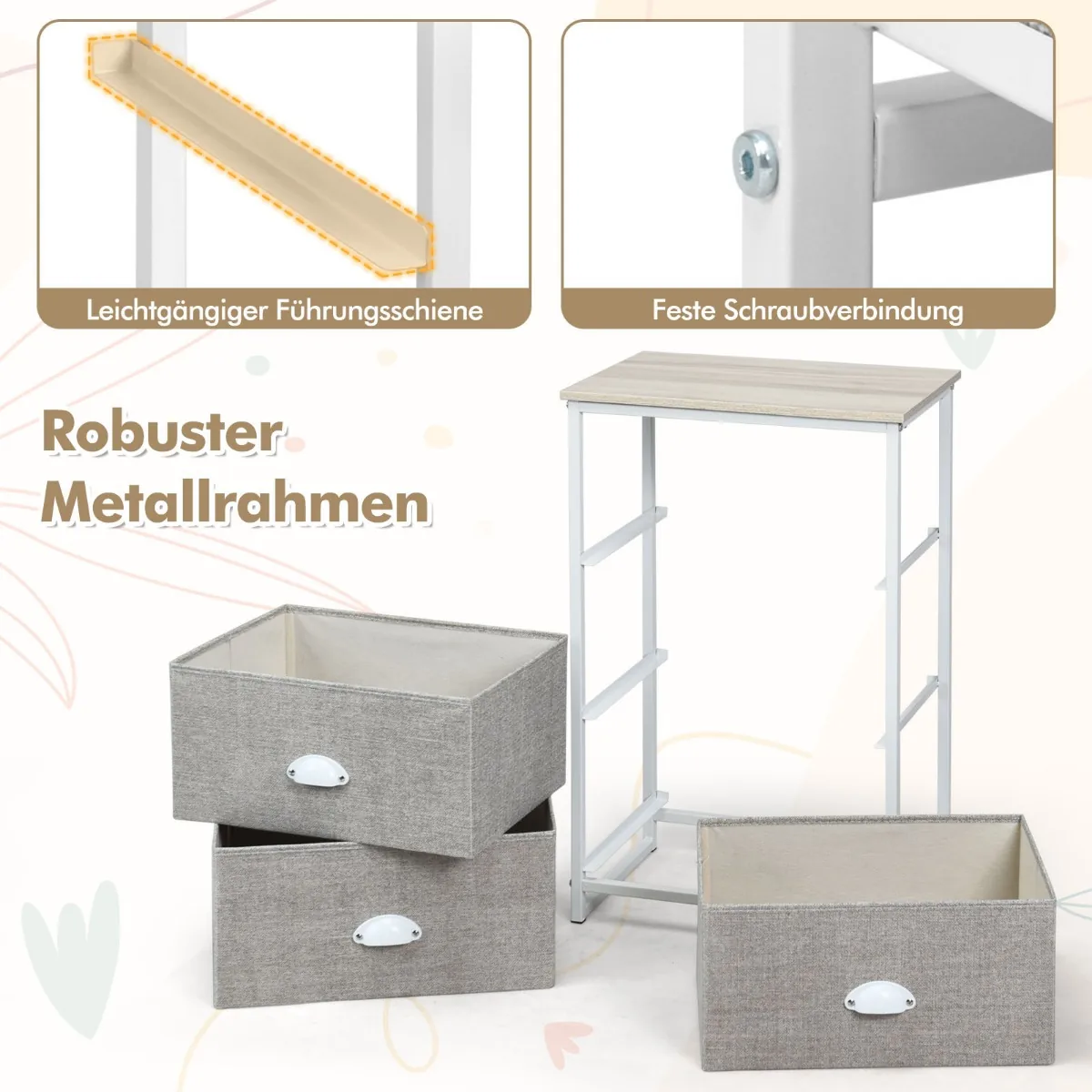 - Trys sulankstomi stalčiai suteikia vietos drabužiams, aksesuarams ar kitoms smulkmenoms laikyti.