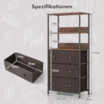 Komoda 56,5x30x117cm rudos spalvos yra patogus ir funkcionalus baldų sprendimas įvairioms patalpoms. Su trimis stalčiais ir trimis lentynomis suteikia pakankamai vietos dokumentams, daiktams ar dekoracijoms laikyti. Tvirta konstrukcija užtikrina stabilumą ir saugumą.