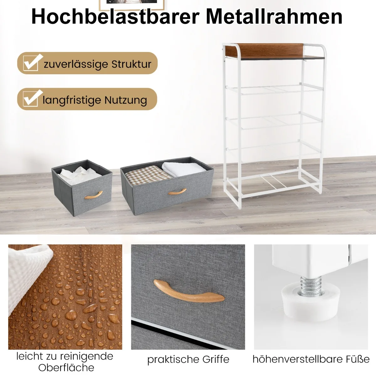 - Penki sulankstomi ir išimami stalčiai suteikia daug vietos drabužiams, žaislams ir kitiems daiktams.