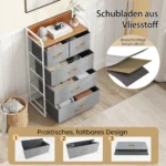 Komoda 58x30x100cm, pilkos ir baltos spalvos, yra funkcionali ir taupanti vietą spintelė, skirta įvairiems daiktams laikyti. Pilkas audinys ir baltos MDF plokštės sudaro patvarų ir lengvai prižiūrimą baldo sprendimą namams ar biurui.