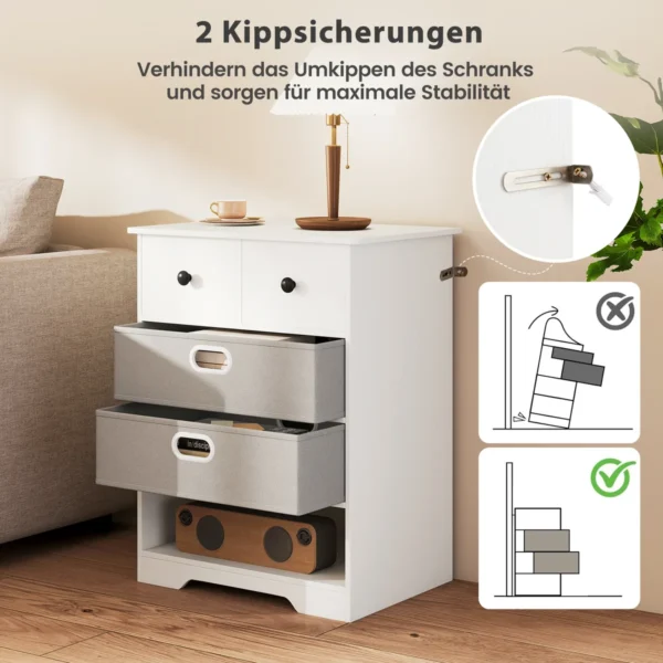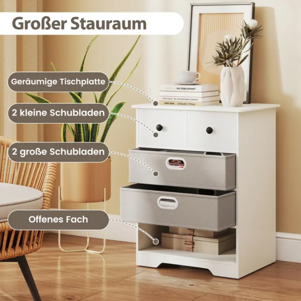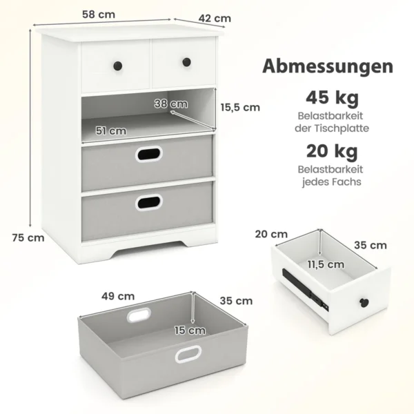 Komoda 58x42x75cm balta/pilkos spalvos – praktiškas ir funkcionalus sprendimas jūsų namų erdvės gerinimui. Ši komoda su 4 stalčiais suteikia pakankamai vietos tvarkingai sudėti įvairius daiktus, o neutralios spalvos leis lengvai priderinti prie bet kokio interjero.