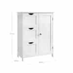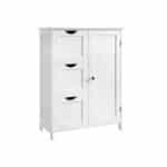 Ši komoda ne tik padės suvaldyti netvarką, bet ir suteiks jūsų vonios kambariui elegancijos. Su 3 giliais stalčiais ir 2 dideliais skyreliais už durelių, galėsite tvarkingai laikyti rankšluosčius, dušo želė buteliukus, valymo priemones, tualetinį popierių ir kitus reikmenis. Be to, 3 lygių reguliuojama lentyna leis individualiai padalinti spintelės laikymo vietą pagal jūsų poreikius.
