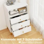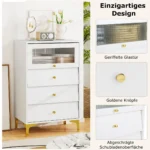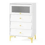 Komoda 60x40x95,5 cm baltos ir auksinės spalvos puikiai tinka papildomai erdvei jūsų namuose. Ši komoda su stalčiais ir spintelėmis leidžia tvarkingai susidėti daiktus, o patikima konstrukcija užtikrina stabilumą.