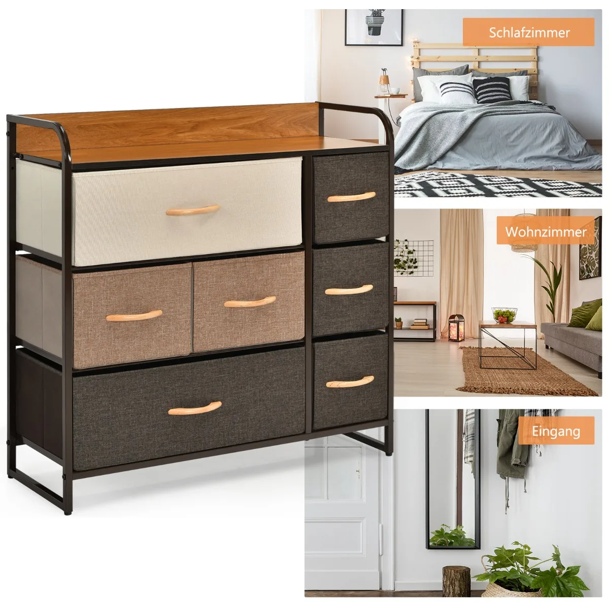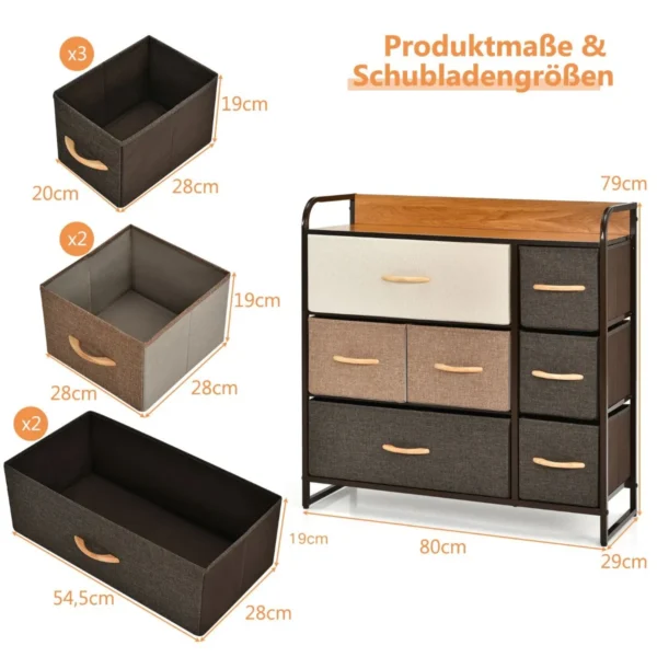• 7 sulankstomi ir išimami stalčiai skirti drabužiams, kojinėms ir kitiems daiktams laikyti.