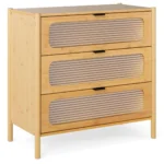 Komoda 80x40x78,5 cm šviesiai rudos spalvos – praktiškas ir funkcionalus sprendimas namų interjerui. Ši komoda su trimis stalčiais suteikia pakankamai vietos įvairiems daiktams saugoti, o natūralių medžiagų derinys užtikrina ilgaamžiškumą.
