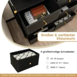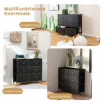Komoda 89x30x76,5cm juodos spalvos yra praktiškas ir universalus sprendimas daiktų laikymui. Ji puikiai tinka įvairioms patalpoms – miegamajam, svetainei ar prieškambariui. Komoda pasižymi patvaria konstrukcija ir talpiais stalčiais, kurie leidžia tvarkingai sutvarkyti daiktus.