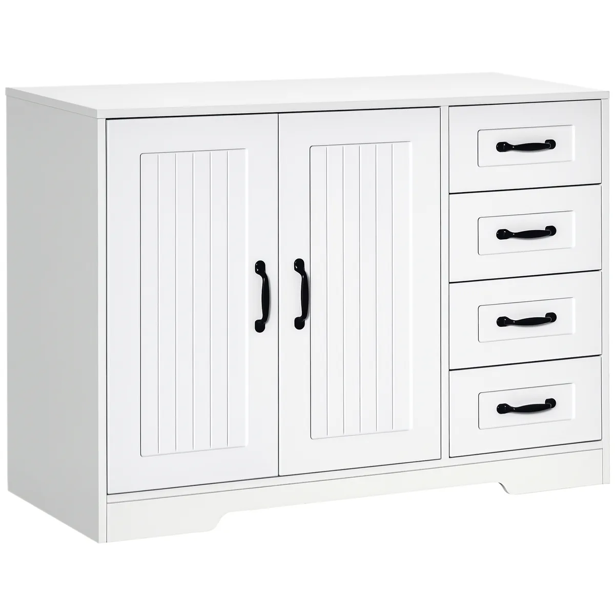 - ✔ Didelė daiktų laikymo vieta su dviejų durų spintele ir keturiais stalčiais kasdieniams poreikiams