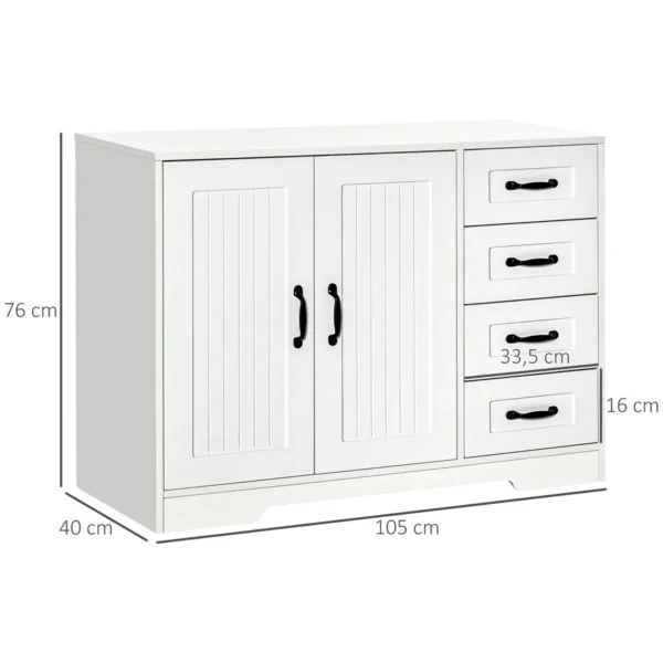 Naudodami šią šoninę HOMCOM spintelę galite greitai sukurti reikiamą saugojimo vietą ir užsisakyti. Dėl paprasto, modernaus dizaino ši spintelė yra subtili ir nepastebima akį traukianti jūsų namuose. Tuo pačiu metu spintelė ir stalčiai suteikia daug vietos kasdieniams priedams ir indams laikyti. Galite individualizuoti savo namus naudodami reguliuojamą lentyną, kuri prisitaiko prie jūsų poreikių.
