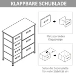 Ši praktiška, lengva stalčių spintelė suteikia vietos knygoms, drabužiams ar kitiems daiktams, o jūsų namuose bus tvarkinga. Ši kompaktiška komoda tiks ir vaikų kambariui! Nenaudojami medžiaginiai stalčiai gali būti lengvai sulankstomi ir lanksčiai naudojami pagal poreikį. Dėl savo skoningo dizaino ši moderni indauja puikiai dera bet kokioje patalpoje ir bet kokio stiliaus apstatyme.