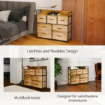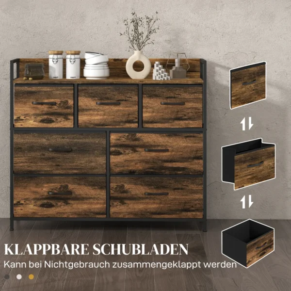 Ši elegantiška HOMCOM pramoninio stiliaus spintelė idealiai tinka tvarkingiems namams. Tvirtas su plieniniu rėmu ir patvariomis MDF lentynomis užtikrina kasdieninį patikimumą. Septyniuose erdviuose medžiaginiuose stalčiuose yra daug vietos ir juos lengva išimti. Apima patogias reguliuojamas kojeles.