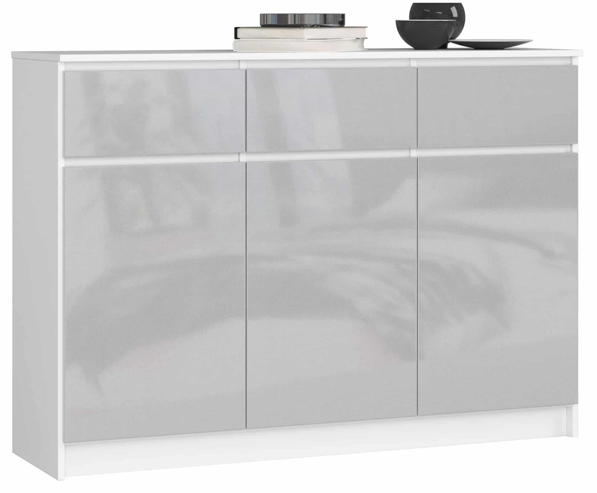Komoda iš aukštos kokybės 16 mm laminuotos plokštės, atsparios dilimui. Kompaktinį diską pateikia gamintojas Kronospan Stalčių fasadai pagaminti iš laminuotos plokštės Stalčiai veikia ant metalinių slydimo ritinėlių Kraštai padengti ABS apvadu, kad būtų gerai apsaugoti nuo pažeidimų Kiekvieno viduje durys yra viena lentyna Savarankiškai surenkama komoda Instrukcijos pridedamos 24 mėnesių garantija