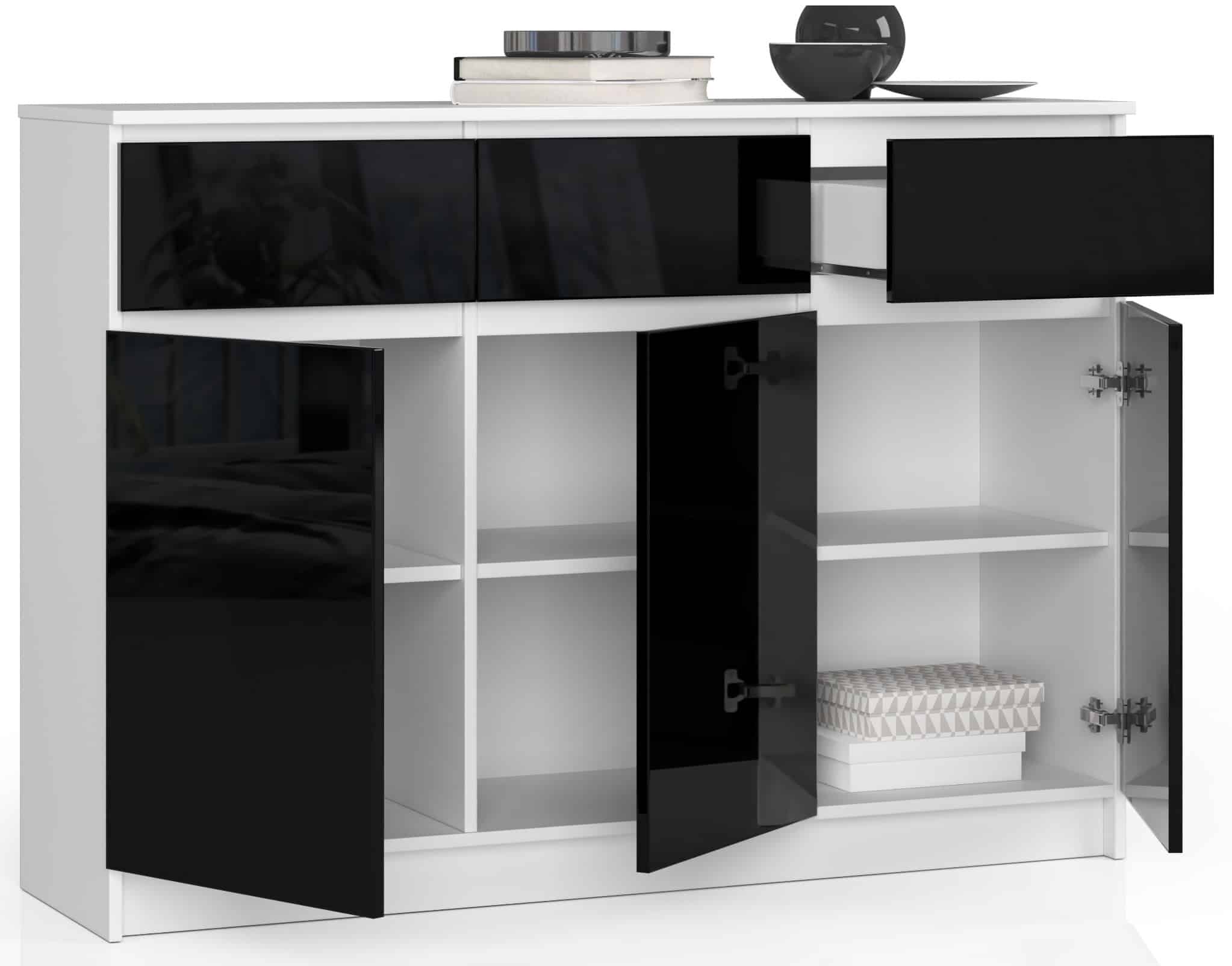 Komoda iš aukštos kokybės 16 mm laminuotos plokštės, atsparios dilimui. Kompaktinį diską pateikia gamintojas Kronospan Stalčių fasadai pagaminti iš laminuotos plokštės Stalčiai veikia ant metalinių slydimo ritinėlių Kraštai padengti ABS apvadu, kad būtų gerai apsaugoti nuo pažeidimų Kiekvieno viduje durys yra viena lentyna Savarankiškai surenkama komoda Instrukcijos pridedamos 24 mėnesių garantija