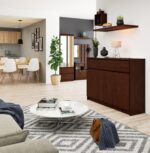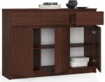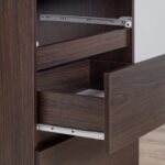 Erdvi komoda elegantiška ir madinga wenge spalva. Trimis spintelėmis su durelėmis ir trimis stalčiais aprūpinta komoda K140 iš internetinės parduotuvės Akord yra puikus pasirinkimas kiekvienam, ieškančiam skoningo baldo, galinčio tapti funkcionalia bet kurios patalpos puošmena. Puikiai tiks tiek miegamajame, tiek svetainėje ar prieškambaryje! Stabilus, tvirtas ir pagamintas iš kokybiškų medžiagų, mūsų erdvioje komodoje po ranka bus viskas, ko norite. Ant jos stalviršio bus gražiai pateikti Jūsų mėgstami šeimos suvenyrai ar kitos dekoracijos! Komoda K140 pagaminta iš kokybiškos, trinčiai atsparios 16 mm storio laminuotos plokštės. Stalčių fasadai taip pat pagaminti iš laminuotos plokštės, o patys stalčiai eina ant patvarių, metalinių ritinėlių kreiptuvų, kurie užtikrina tylų ir sklandų pratęsimą. Baldų kraštai padengti ABS apvadu, kuris padidina jų atsparumą mechaniniams pažeidimams, atsirandantiems dėl kasdienio naudojimo. Pateikta komoda stalčiai yra savaiminio surinkimo baldas – komplekte yra atitinkama instrukcija. Baldams suteikiama 24 mėnesių garantija. – Komoda iš trinčiai atsparios laminuotos plokštės – Stalčių fasadai iš laminuotos plokštės – Stalčiai juda ant metalinių ritinėlių kreiptuvų – Kraštai faneruoti su ABS briauna, užtikrinančia aukštą apsaugą nuo pažeidimų – Savarankiškai surenkama komoda – Pristatoma rankiniu būdu – Garantija 24 mėn.