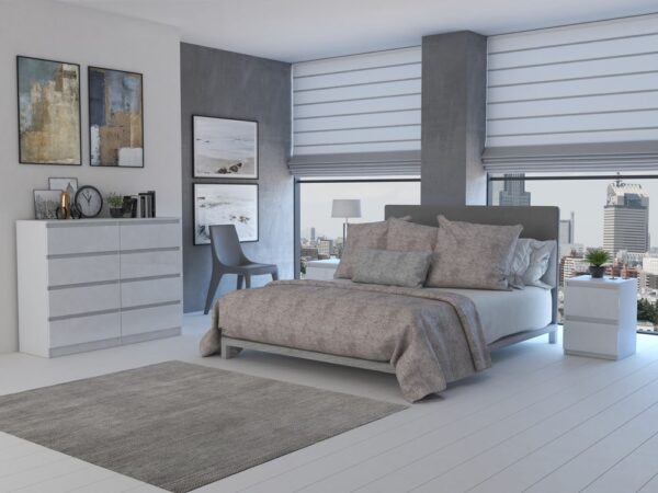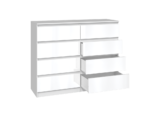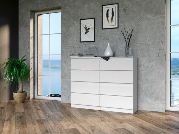 Priekinė komodos dalis – dengta aukštos kokybės laku, naudojamu apdailai; Lakas – atsparus spalvos pokyčiams, kuriuos sukelia UV spinduliai, todėl paviršių lengva išlaikyti švarų;