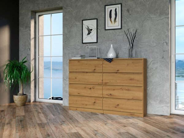Aštuonių stalčių komoda;