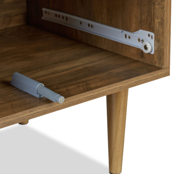 - Praktiškumas: Viršutinė lentyna puikiai tinka dekoracijoms ar lempoms, o užspaudžiami stalčiai suteikia papildomos vietos daiktams laikyti.