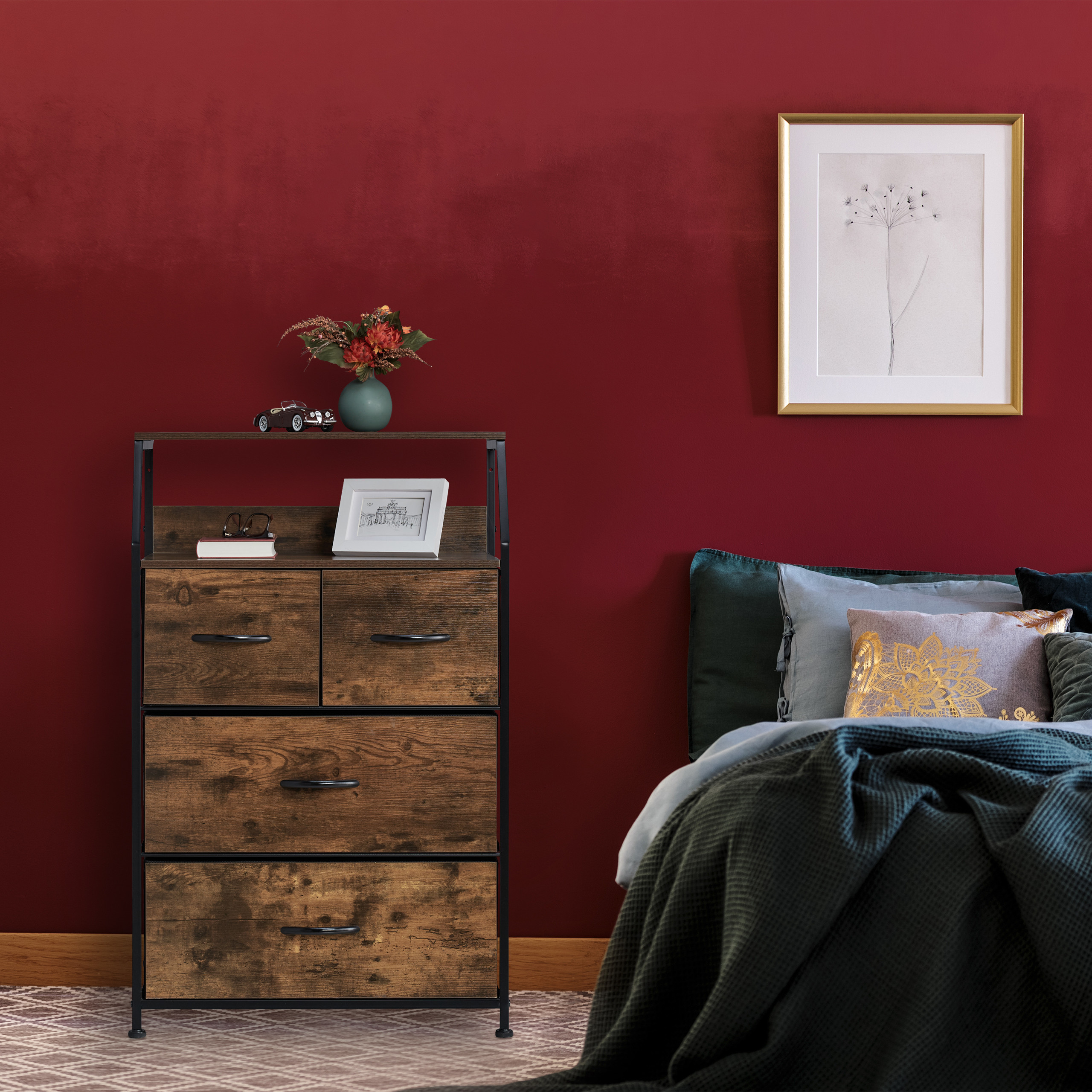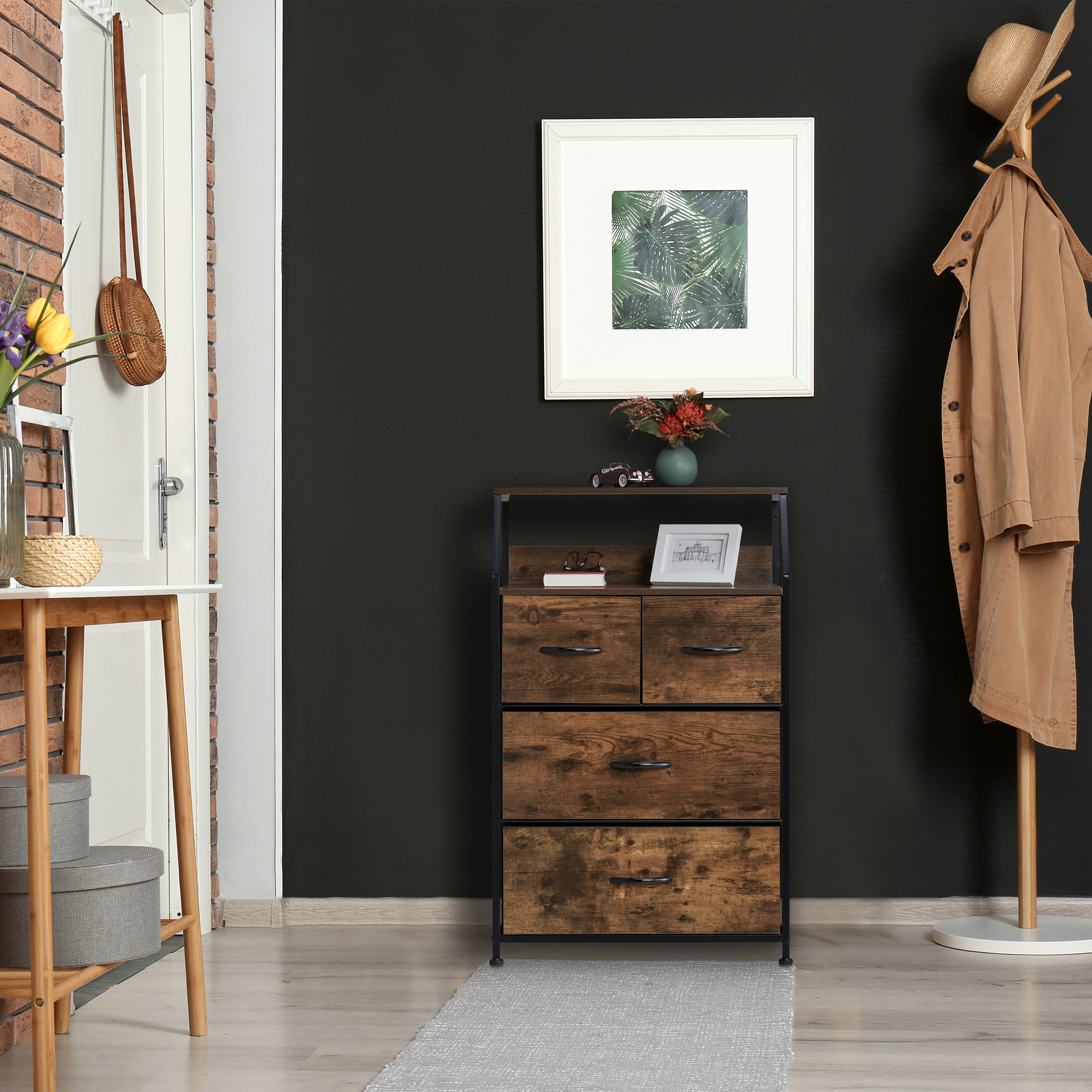 Komoda su 4 skyriais 96,5x60x41,5cm, tamsiai rudos/juodos spalvos