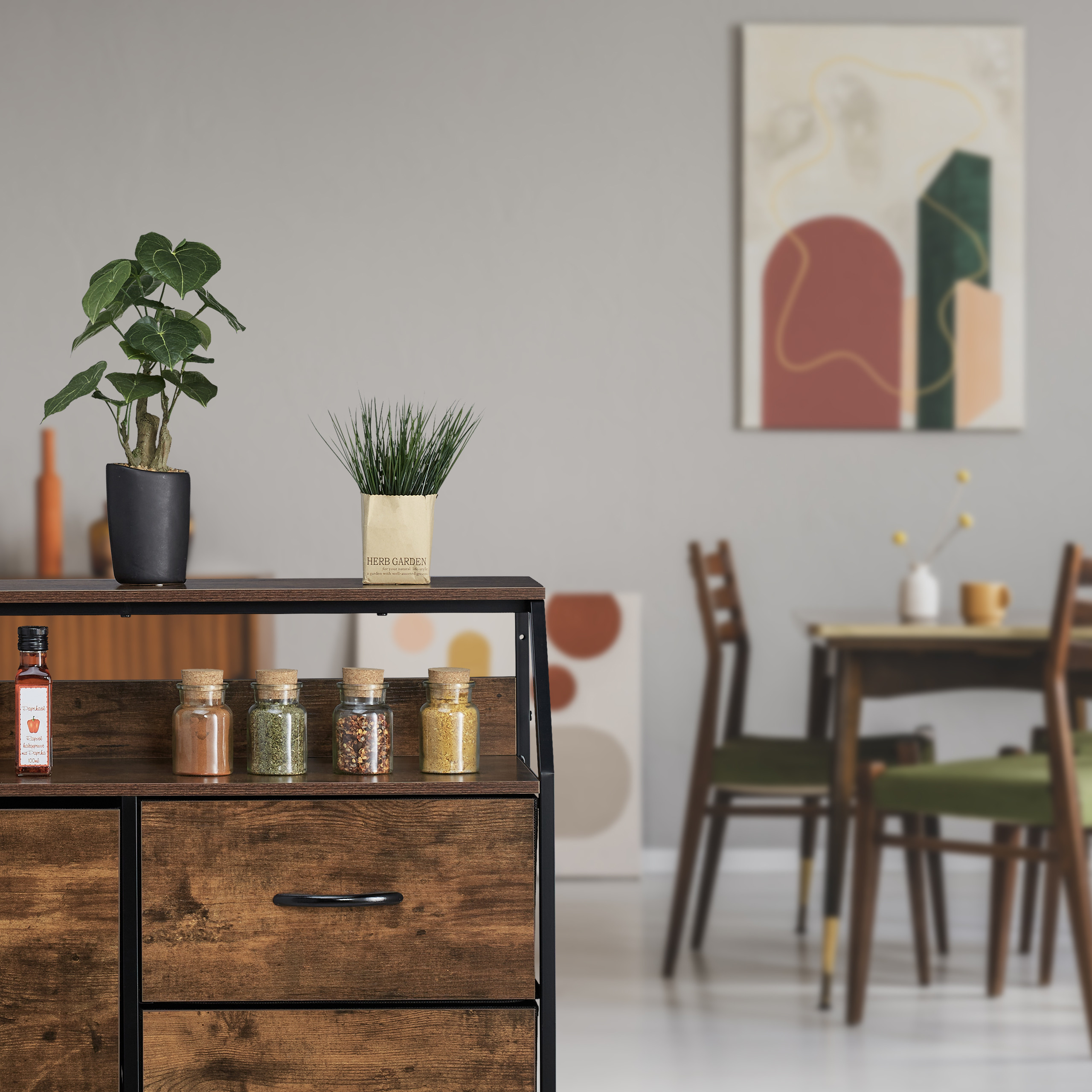 Įneškite pramoninio stiliaus elegancijos į savo namus su šia metaline komoda, kuri puikiai dera prie modernaus interjero. Ši kaimiška juodos ir rudos spalvos midi spintelė yra ne tik funkcionali, bet ir stilinga, todėl puikiai tinka siauriems prieškambariams, miegamiesiems ar svetainėms.