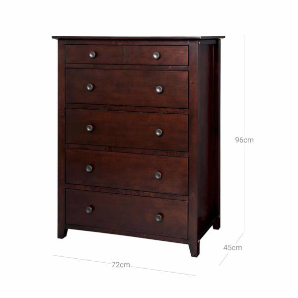 Viskas turi savo vietą! Ant didelio komodos paviršiaus galite padėti sukulentus ir artimųjų nuotraukas, o drabužius, žurnalus ar knygas sudėti į 5 erdvius stalčius. Dabar, kai viskas saugoma ir surūšiuota, galite greitai pasiekti reikalingus daiktus.
