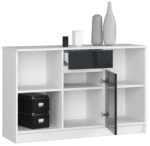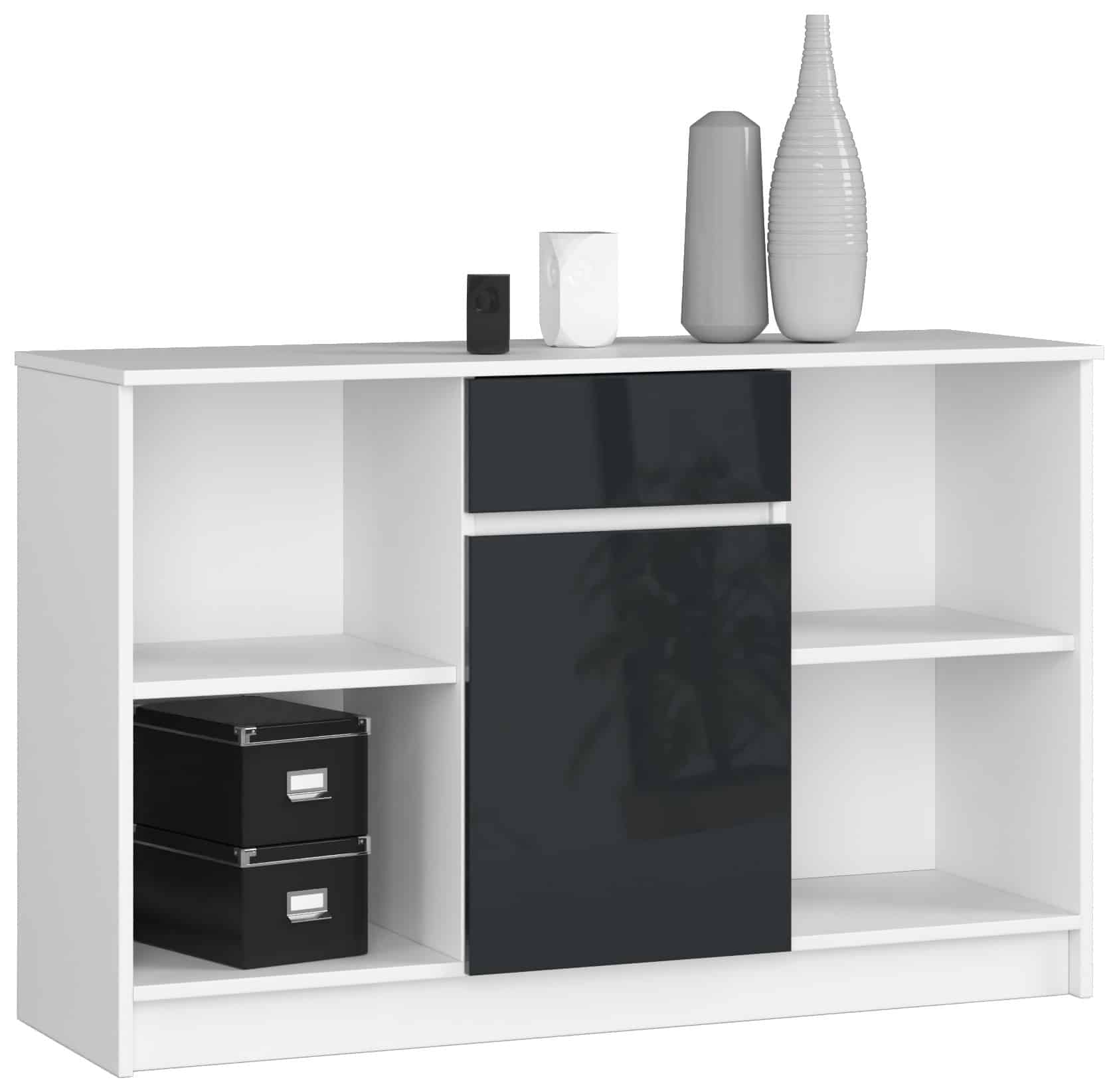Komodos – tai baldai, kurie nepraranda savo populiarumo. Visų pirma todėl, kad jie yra funkcionalūs. Beje, jie puikiai tinka šiuolaikinėms tendencijoms. To pavyzdys – mūsų parduotuvės pasiūloje esanti krūtinė B-17 120 cm. Jį sudaro lentynos, stalčius ir vienos durys. Baldai yra balti, o stalčių ir durų fasadai yra blizgaus grafito. Komoda puikiai tiks ne tik svetainei, bet ir miegamajam bei svetainei. Komoda B-17 turi daug privalumų, todėl verta apsvarstyti galimybę ją įsigyti: > ilgaamžiškumas – baldai pagaminti iš aukštos kokybės 16 mm laminuotos plokštės, atsparios dilimui ir įbrėžimams, naudojimo patogumas – stalčius šiek tiek juda ant metalinių ritinėlių kreiptuvų, atsparumas – komodos kraštai padengti ABS apvadu, kuris užtikrina aukštą apsaugą nuo pažeidimų, talpa – gabalas baldai turi daug erdvės išdėstyti, funkcionalumas – stalčiaus ir lentynų dėka lengviau palaikyti tvarką patalpoje, o ant baldo viršaus galima dėti dekoracijas, li> šiuolaikiška išvaizda – baldai dera į įvairius išdėstymus ir dera prie dabartinių tendencijų, lankstumas – galimybė susikurti komplektaciją – rašomojo stalo kampelis su komoda B-17, patraukli kaina ir garantija (24 mėn.). Komoda skirta savarankiškam surinkimui, tam padeda prie užsakymo pridedama instrukcija. Baldai pasižymi tvirtumu ir aukšta estetika. Jis taip pat yra patvarus ir atsparus, todėl tarnaus daugelį metų. Nepaisant puikios kokybės, jis yra prieinamas.