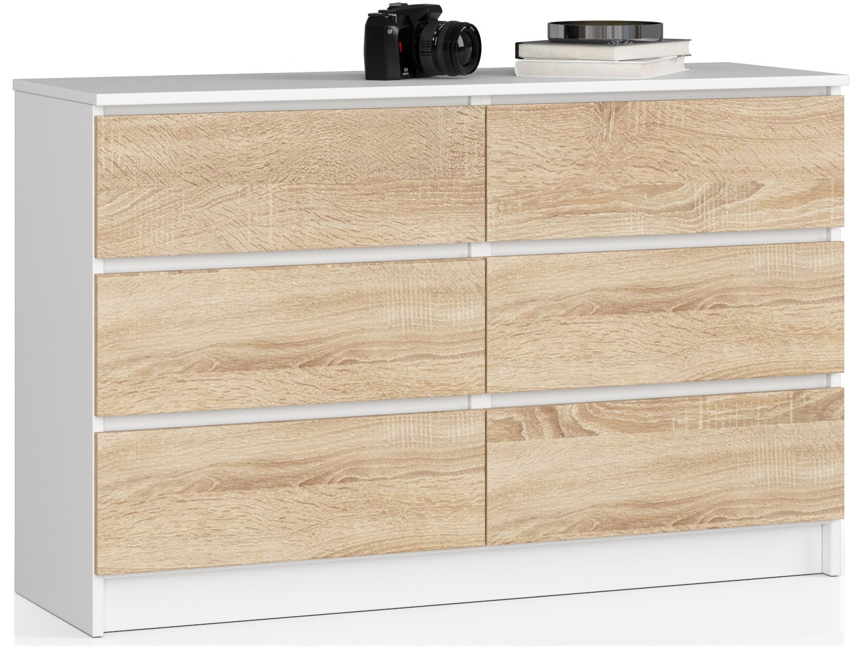 Komoda NORE K120 su 6-iais stalčiais, ąžuolo/baltos spalvos