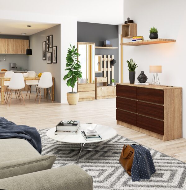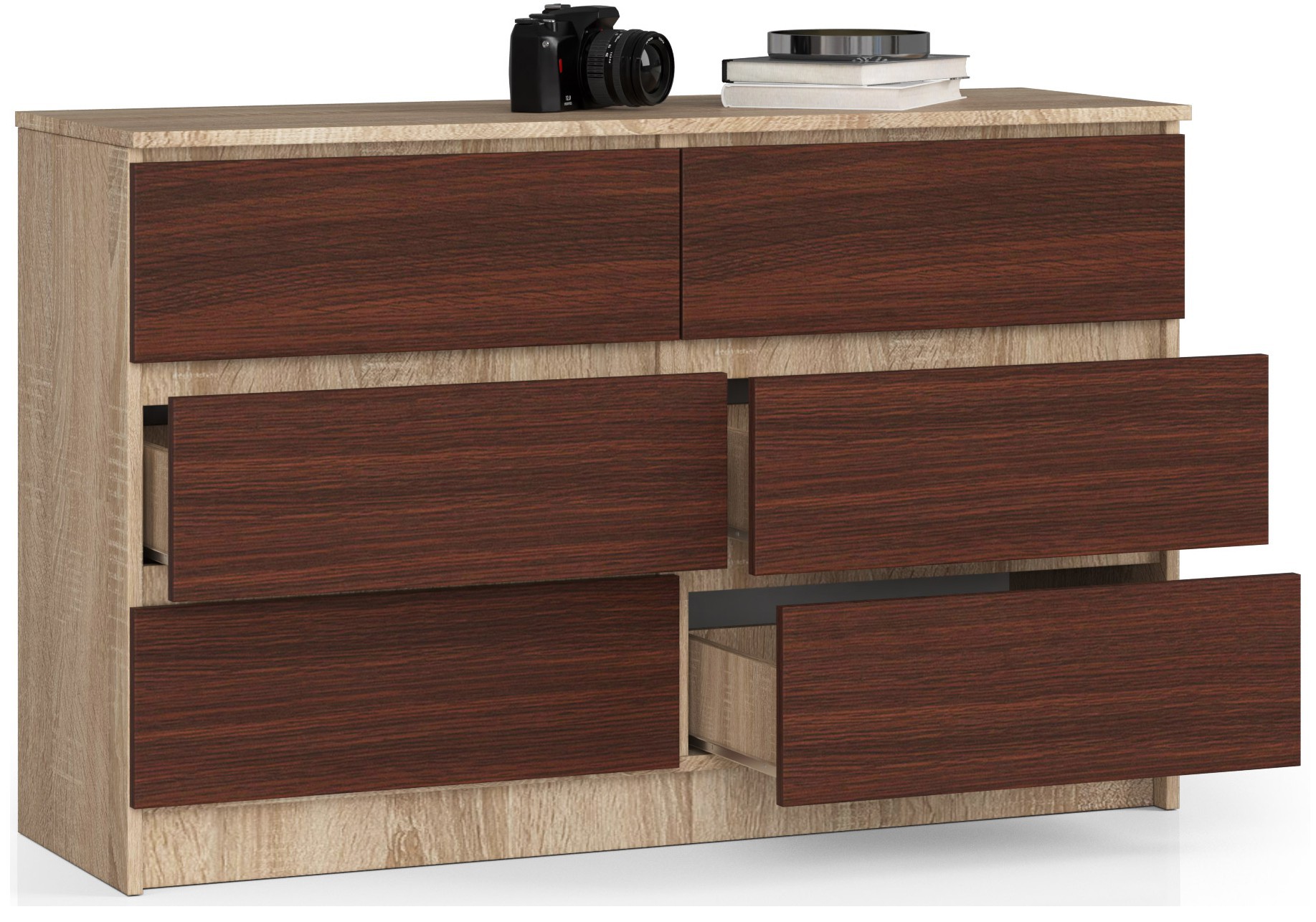 Komoda NORE K120 su 6-iais stalčiais, ąžuolo/tamsiai rudos spalvos