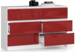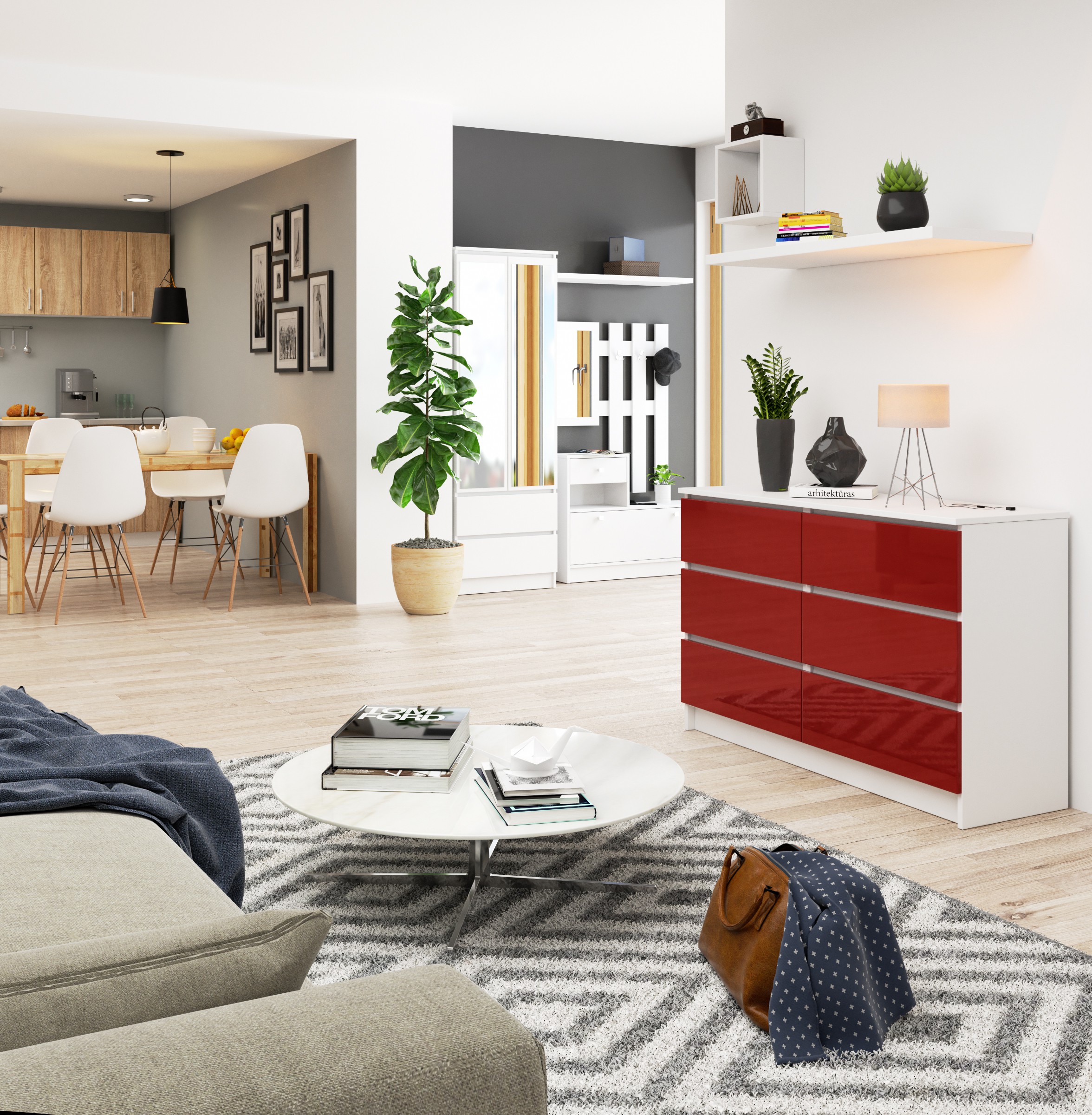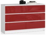 – Komodos korpusas pagamintas iš laminuotos plokštės balto kilimėlio, atsparus dilimui 16 mm – Priekiniai skydai pagaminti iš 19 mm akrilo plokštės su raudonu blizgiu dekoru – Stalčiai juda ant metalinių ritinėlių kreiptuvų – Kraštai padengti ABS briauna, užtikrinančia aukštą apsaugą nuo pažeidimų – Savarankiškai surenkama komoda – Prie komplekto pridedamos instrukcijos pristatymas – 24 mėnesių garantija