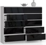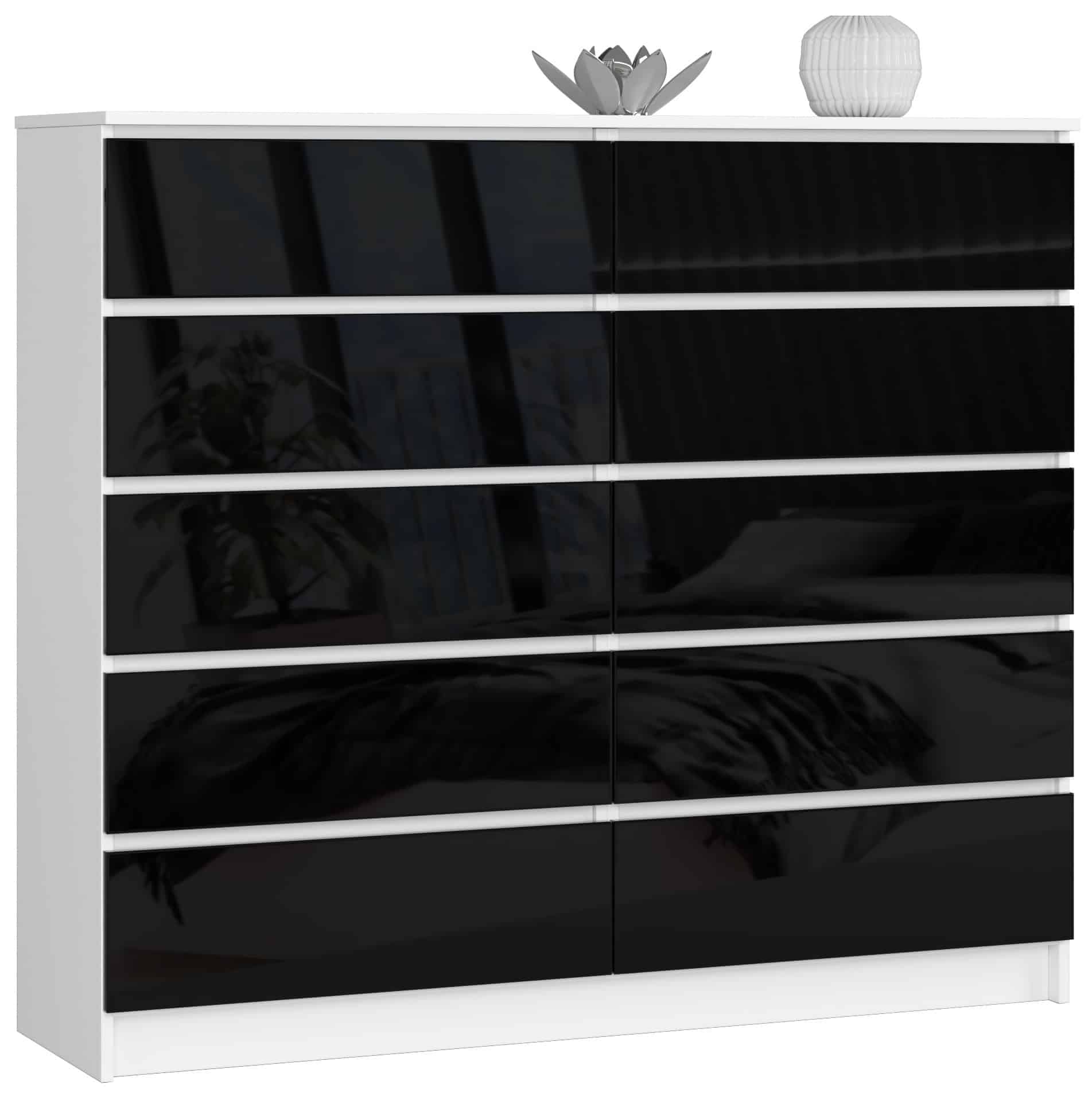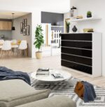 Komoda NORE K140, blizgios baltos/juodos spalvos