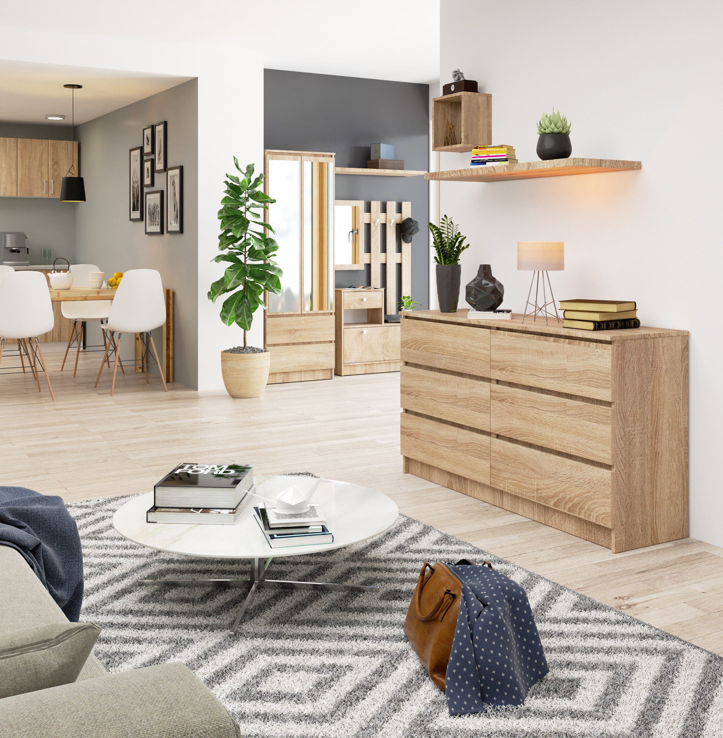 Šeši praktiški stalčiai, ilgas stalviršis ir spalva, kuri neabejotinai yra pati populiariausia tarp žmonių, kurie mėgsta lengvai valomus, universalius ir nesenstančius baldus – štai tokios sonomos spalvos komodos K140 savybės ąžuolas. Pasiūlymas nusipelno dėmesio pirmiausia dėl savo dizaino ir unikalaus funkcionalumo, tačiau verta atkreipti dėmesį ir į kokybišką bei kruopštų baldų apdirbimą, kurį galima sėkmingai naudoti tiek biure, tiek svetainėje, valgomasis, miegamasis ar daugelis kitų gyvenamųjų patalpų interjerų. Solidų ilgaamžių medžiagų apdirbimą tikrai įvertins išrankiausi klientai, kuriems baldų privalumas bus ir palanki kaina. – Komoda pagaminta iš dilimui atsparios laminuotos plokštės – Stalčių fasadai pagaminti iš laminuotos plokštės – Stalčiai yra ant metalinių ritinėlių kreiptuvų – Kraštai padengti ABS apvadu užtikrina aukštą apsaugą nuo pažeidimų – Savarankiškai surenkama komoda – Instrukcija pridedama – Garantija 24 mėn.