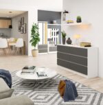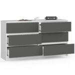 Komoda NORE K140 su 6-iais stalčiais, baltos/pilkos spalvos