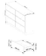 – Komoda pagaminta iš trinčiai atsparios laminuotos plokštės – Stalčių fasadai iš laminuotos plokštės – Stalčiai eina ant metalinių ritinėlių kreiptuvų – Kraštai padengti ABS briauna, užtikrinančia aukštą apsaugą nuo pažeidimų – Savarankiškai surenkama komoda – Pristatyme pateikiamos instrukcijos – 24 mėnesių garantija