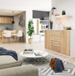 Nerandate komodos, kuri būtų ne tik erdvi, bet ir papuoš jūsų butą? Mūsų 140 cm aukščio ir 160 cm pločio K komoda puikiai tiks šiam vaidmeniui! Dėl 4 stalčių ir 2 lentynų, kurių gylis yra 60 cm, jame telpa daug drabužių, žaislų ir žaidimų. Dėl savo neutralaus, bet žavingo dizaino jis puikiai tiks tiek suaugusiojo, tiek vaiko miegamajame. Taip pat verta įvertinti baltos ir ąžuolo derinį sonomos spalvoje, kuris puikiai derės prie skandinaviško, minimalistinio interjero. Mūsų komodos turi ir daug kitų privalumų! Stalčiai yra ant metalinių ritinėlių kreipiančiųjų 24 mėnesių garantija Kiekvienos durelės viduje yra erdvios lentynos, kuriose tilps net didžiausias kiekis drabužių Galimybė savarankiškai surinkti pagal pakuotėje esančias instrukcijas Kraštai padengti pažeidimams atsparia ABS briauna Bėgimas sistema, pagrįsta metaliniais ritininiais kreiptuvais, užtikrina puikias durų kreipimo savybes ir ilgą be rūpesčių naudojimą Pagaminta iš aukštos kokybės 16 mm storio laminuotos plokštės, atsparios trinčiai Komoda yra tikrai būtina turėti svetainėje ne. Dėl solidaus darbo ir apgalvoto stalčių bei lentynų išdėstymo baldas puikiai atlieka savo užduotis. Be to, išlaikyti švarą komodą itin paprasta, nes laminuota lenta atspari tiek sausam, tiek šlapiam valymui. Raginame patikrinti likusius kolekcijos elementus, kurių dėka sukursite savo svajonių baldų komplektą.