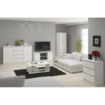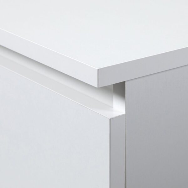 Komoda K160 yra funkcionalus baldas, kuriame yra daug laisvos erdvės. Jis yra baltos spalvos, todėl idealiai tinka skandinaviškam ir minimalistiniam interjerui. Baldas yra paprastos formos, todėl yra universalus: gali būti tiek bute, tiek biure. Komoda yra 160 cm ilgio ir 99 cm aukščio. Savo ruožtu gylis yra 40 cm. Jis buvo pagamintas iš 16 cm storio, atsparios dilimui laminuotos plokštės iš gamintojo Kronospan. Be to, jo kraštai padengti ABS apvadu, kuris papildomai apsaugo nuo pažeidimų. Baldą sudaro dvi spintos ir po vieną lentyną kiekvienoje iš jų. Jame taip pat yra 4 stalčiai, kurie juda su metaliniais ritinėliais. Šis baldas suteikia didelį naudojimo komfortą, yra erdvus ir funkcionalus. Komoda skirta montuoti savarankiškai. Prie kiekvieno užsakymo pridedamos instrukcijos padeda tai padaryti, todėl surinkimas nesukelia didelių problemų. Taip pat suteikiame 24 mėnesių garantiją. Baldų galima įsigyti už prieinamą kainą, ypač atsižvelgiant į jų ilgaamžiškumą ir tvirtumą. Be to, jis atrodo gražiai. – Komoda pagaminta iš aukštos kokybės 16 mm laminuotos plokštės, atspari dilimui, gamintojas kronospan – Stalčių fasadai iš laminuotos lenta – Stalčiai juda ant metalinių ritinėlių kreiptuvų – Kraštai padengti ABS briauna, kad būtų gerai apsaugota nuo pažeidimų – Kiekvienoje durelių viduje yra po vieną lentyną – Komoda savaiminio surinkimo stalčiai – Instrukcijos pridedamos – Garantija 24 mėn.