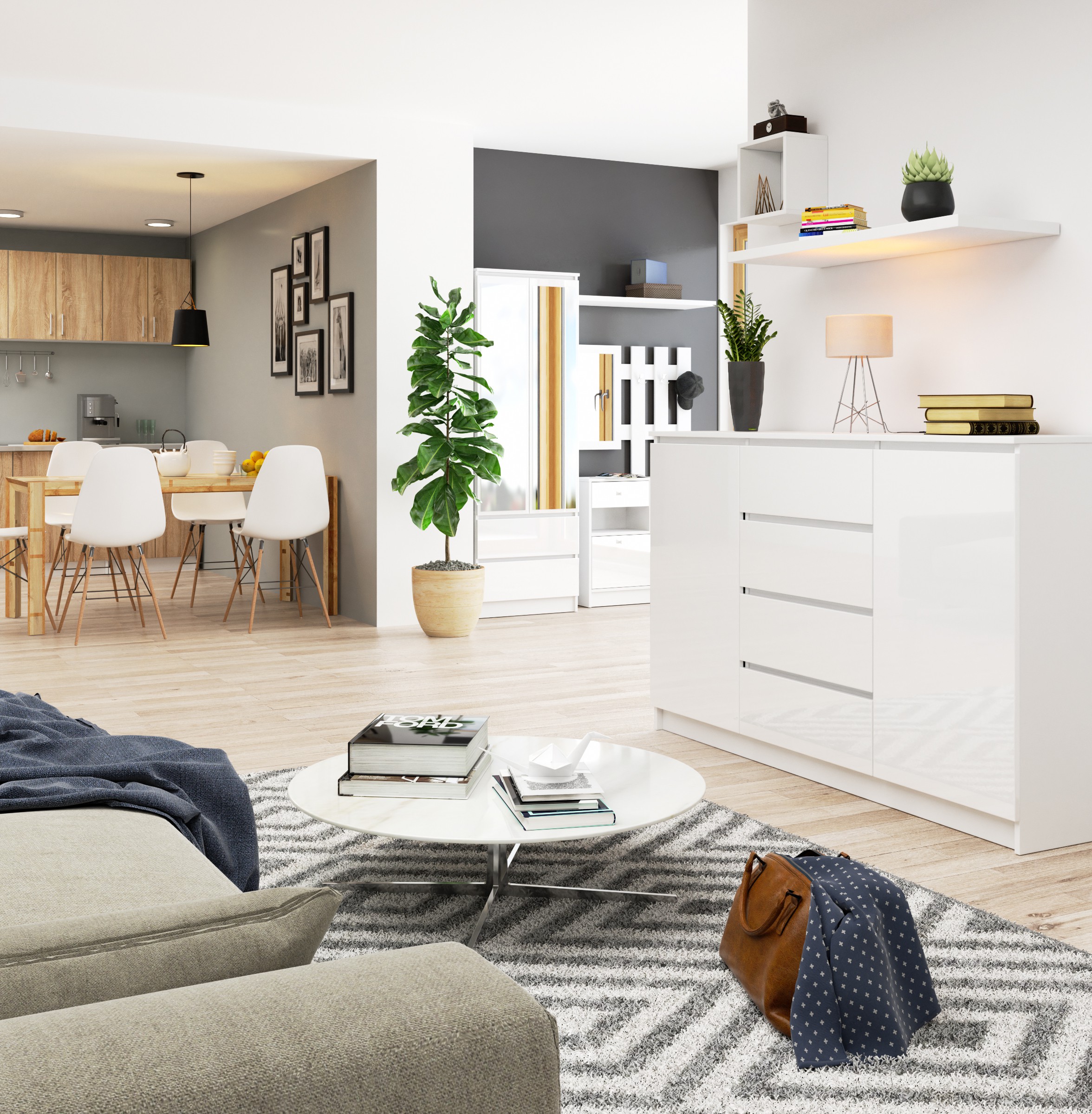 – Komodos korpusas pagamintas iš 16 mm baltos pusiau matinės laminuotos plokštės, atsparios trinčiai – Priekiniai skydai pagaminti iš 19 mm akrilo lentos su baltu blizgiu dekoru – Stalčiai juda ant metalinių ritinėlių kreiptuvų – Kraštai padengti ABS briauna, užtikrinančia aukštą apsaugą nuo pažeidimų – Savarankiškai surenkama komoda – Pridedamos instrukcijos pristatyme – 24 mėnesių garantija