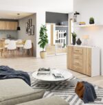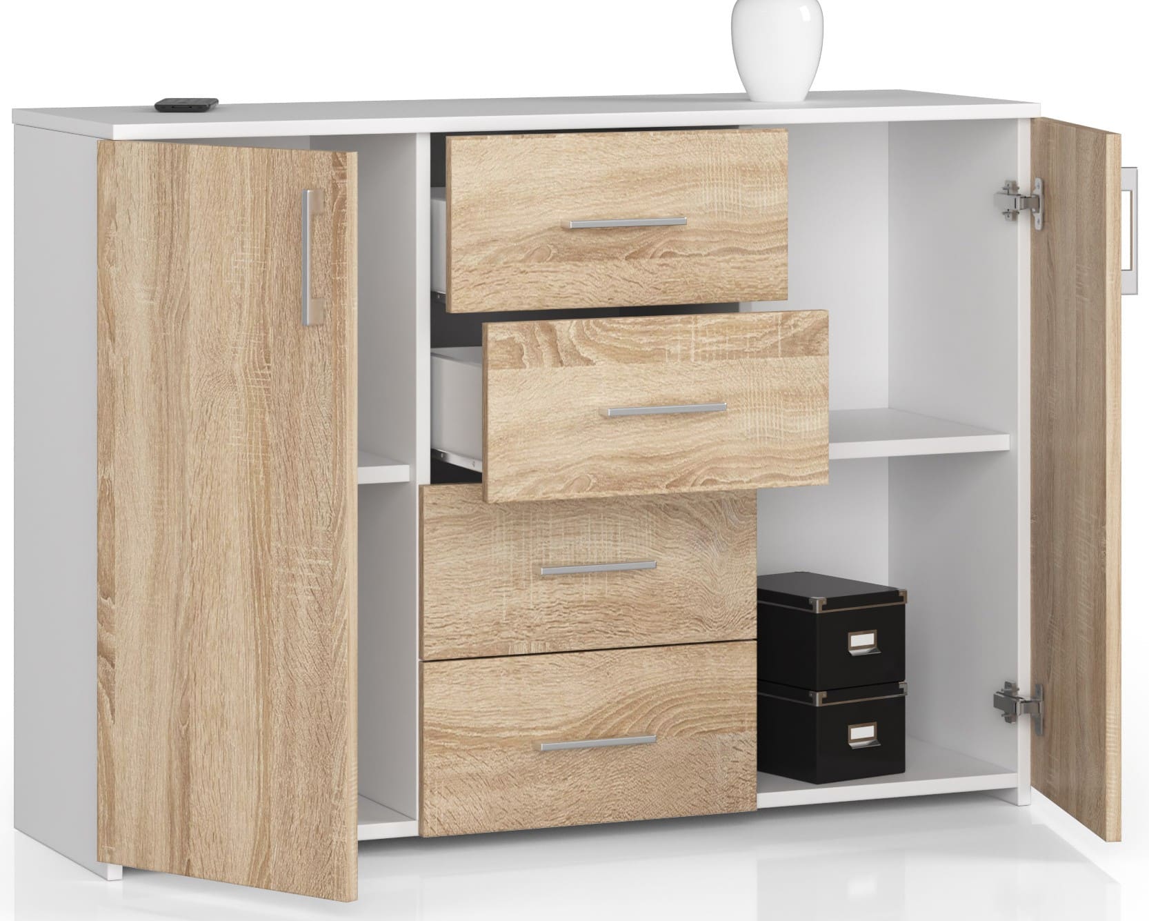Komoda NORE K45, baltos/ąžuolo spalvos