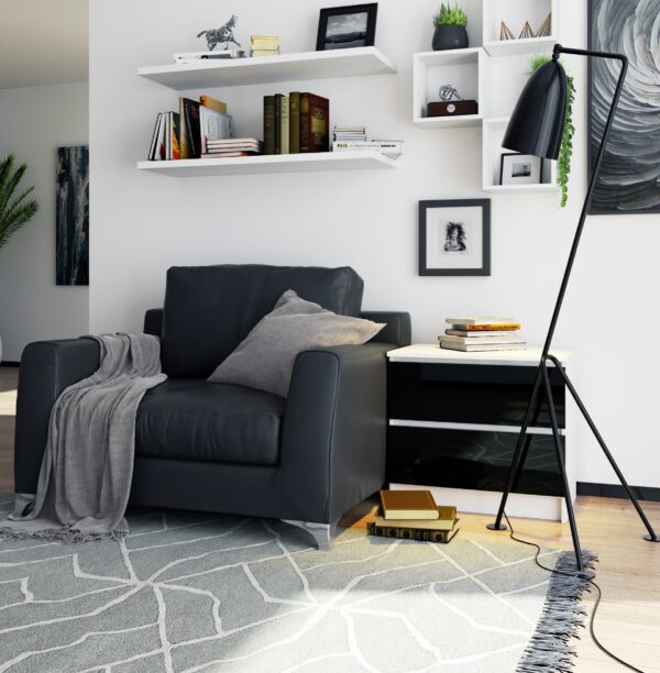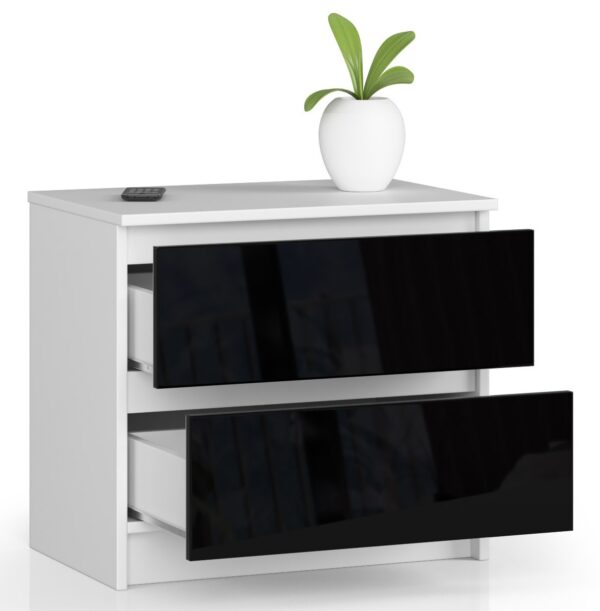 Komoda NORE K60 su 2-iems stalčiais, baltos/juodos spalvos