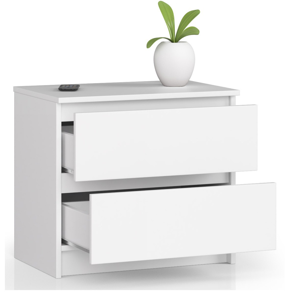 Baltas naktinis staliukas yra aukštos kokybės gaminys, kuris puikiai tiks tiek moderniame, tiek klasikiniame kambaryje. Baldai kruopščiai pagaminti iš patvarios šešiolikos milimetrų storio laminuotos plokštės, kuri yra atspari dilimui. Jo kraštai padengti ABS apvadu. Paprasta forma ir minimalistinis charakteris prisideda prie mūsų parduotuvėje siūlomo pasiūlymo už itin patrauklią kainą universalumo ir nesenstingumo. Erdvūs stalčiai yra ant metalinių ritinėlių kreiptuvų, todėl patogiau naudotis naktiniu staleliu. Savaiminiam surinkimui skirtas baldas tikrai pateisins lūkesčius žmonių, kurie domisi solidžiai pagamintais, efektyviais naktiniai staleliais, tinkančiais kiekvienam miegamajam – nepriklausomai nuo jo stiliaus ar dydžio. – Komoda pagaminta iš laminuotos plokštės, atsparios dilimui – Stalčių fasadai pagaminti iš laminuotos plokštės – Stalčiai yra ant metalinių ritinėlių kreiptuvų. – Kraštai padengti ABS briauna, užtikrinančia aukštą apsaugą nuo pažeidimų – Savarankiškai surenkama komoda – Pristatyme pateikiamos instrukcijos – Garantija 24 mėn. /p>