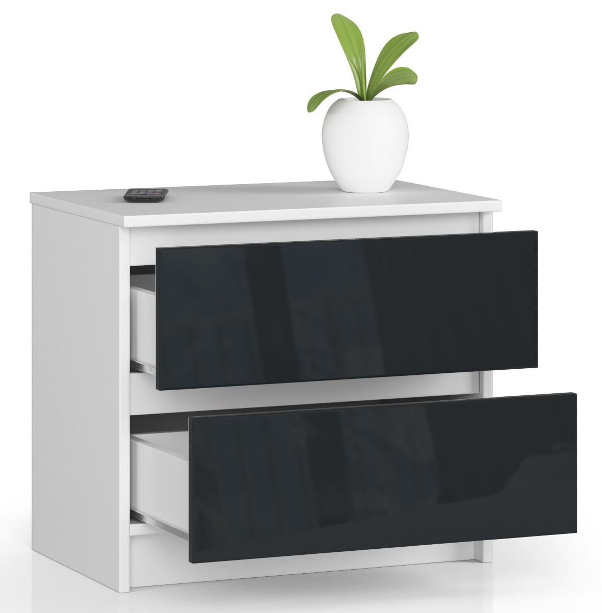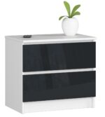 Komodos korpusas pagamintas iš laminuoto balto kilimėlio, atsparaus trinčiai – Stalčių fasadai pagaminti iš MDF 19 mm AKRILINIO itin blizgaus – Stalčiai yra ant metalinių ritinėlių kreipiančiųjų – Kraštai padengti ABS briauna, kad būtų gerai apsaugota nuo pažeidimų – Savarankiškai surenkama komoda – Pristatymo vadovas – Garantija 24 mėn.