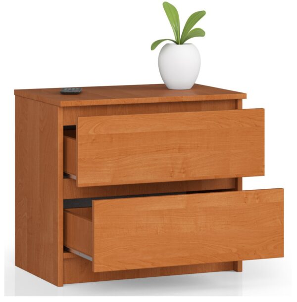 Alksnio spalvos naktinis staliukas yra puikus pasiūlymas kiekvienam miegamajam. Baldas pagamintas solidžiai ir kruopščiai iš patvarių, labai patvarių medžiagų, susideda iš dviejų erdvių stalčių. Naktiniai staleliai, šalia lovos ir spintos, yra būtini baldai ne tik miegamajame, bet ir svečių ar jaunimo kambaryje. Ant tokio tipo baldų galite pastatyti naktinį šviestuvą, savo mėgstamą knygą ar puodelį arbatos, išgertos prieš miegą. Efektyviai slankiojantys stalčiai sutalpins apatinius ar būtiniausius daiktus iškart po pabudimo. Prie naktinio staliuko galite priderinti kitus miegamojo baldus, sukurtus kaip mūsų parengtos kolekcijos dalį. Klasikiškai gražūs alksnio spalvos baldai puikiai atrodys tiek tradiciniame, tiek moderniame interjere. – Komoda pagaminta iš Kronospan aukštos kokybės laminuotos plokštės, atspari dilimui – Stalčių fasadai pagaminti iš laminuotos plokštės – Stalčiai eina ant metalinių ritinėlių kreipiamųjų – Kraštai padengti ABS briauna, kad būtų gerai apsaugoti nuo pažeidimų – Savarankiškai surenkama komoda – Instrukcija pridedama – Garantija 24 mėn.