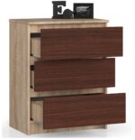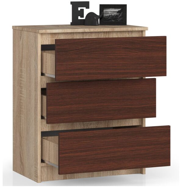 Komoda NORE K60 su 3-imis stalčiais, ąžuolo/tamsiai rudos spalvos