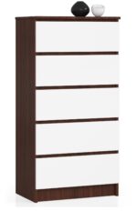 Komoda yra labai populiarus baldas. Jis atrodo gražiai ir tuo pačiu leidžia paslėpti daugybę daiktų ir dalykų. Mūsų pasiūlyme yra CHEST K60 – itin elegantiškas ir funkcionalus. Jis yra 121 cm aukščio ir 60 cm ilgio, o gylis – 40 cm. Jame yra 5 stalčiai, kurie lengvai juda dėl metalinių ritinėlių kreiptuvų. Baldai pagaminti iš kokybiškos 16 mm laminuotos plokštės, kuri yra atspari dilimui. Kalbant apie kraštus, jie buvo padengti ABS apvadu, kuris apsaugo juos nuo pažeidimų. Komoda K60 yra dviejų spalvų. Jo korpusas yra wenge atspalvių, o stalčių šriftai yra balti. Dėl to baldas traukia akį iš tolo. Be to, šis baldas lengviau dera prie įvairių spalvų ir išdėstymo tipų. Dėl savo funkcionalumo jis puikiai tiks svetainėse, miegamuosiuose, kambariuose, taip pat biuruose ir biuruose. Jo paprasta forma yra universali. Kiekvienas užsakymas pateikiamas su instrukcijomis, kurios padės jums patiems surinkti baldus. Verta prisiminti, kad komoda yra tvirtai pagaminta iš patvarių medžiagų, todėl tarnaus ilgus metus. Nepaisant to, siūlome 2 metų garantiją. – Komoda pagaminta iš dilimui atsparios laminuotos plokštės – Stalčių fasadai iš laminuotos plokštės – Stalčiai juda ant metalinių ritinėlių kreiptuvų – Kraštai padengti ABS briauna, užtikrinančia aukštą apsaugą nuo pažeidimų – Savarankiškai surenkama komoda – Pristatyme pateikiamos instrukcijos – Garantija 24 mėn. /p>