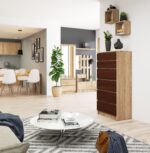 Komoda NORE K60 su 6-iais stalčiais, ąžuolo/tamsiai rudos spalvos