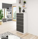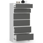 Komoda NORE K60 su 6-iais stalčiais, baltos/pilkos spalvos