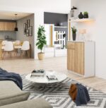 Komoda – tai baldas, kurio neturėtų trūkti svetainėje. Į jį galima sudėti daug daiktų, o tai reiškia didesnę tvarką kambaryje. Savo ruožtu ant jo stalviršio gali būti dedamos gėlės ir dekoracijos. Žmonės, ieškantys solidaus ir estetiško baldo už gerą kainą, gali atkreipti dėmesį į K 60 cm komodą baltu korpusu ir sonomos spalvos fasadais. Šis baldas turi daug privalumų, todėl tai puikus pasirinkimas svetainei ir ne tik (tiks ir miegamajame arba svetainėje). Komoda pasižymi: ilgaamžiškumu – baldas pagamintas iš aukštos kokybės 16mm laminuotos plokštės, atsparios dilimui ir įbrėžimams , talpa – komodoje yra daug vietos išdėstyti, t.y. stalčius ir dvi durys (įskaitant lentynas), naudojimo patogumas – stalčius juda ant metalinio volelio kreiptuvai, atsparumas – baldų kraštai padengti ABS apvadu, užtikrinančiu aukštą apsaugą nuo pažeidimų, aukšta estetika – baldai kruopščiai pagaminti, paprastos formos, tačiau išsiskiria baltos ir sonomos spalvos deriniu, funkcionalumas – komoda padeda palaikyti tvarką ir tuo pačiu gražiai atrodo bei dera prie įvairių interjero derinių, patraukli kaina garantija 24 mėn. Retai kada komodos turi tiek privalumų, kiek jos siūlo svarbus mūsų baldas. Jis išsiskiria ilgaamžiškumu ir tarnaus ilgai. Komoda pasižymi modernia išvaizda, o tuo pačiu leidžia jos interjere paslėpti daugybę daiktų. Baldai skirti montuoti savarankiškai, o tai palengvina komplekte esančios instrukcijos.